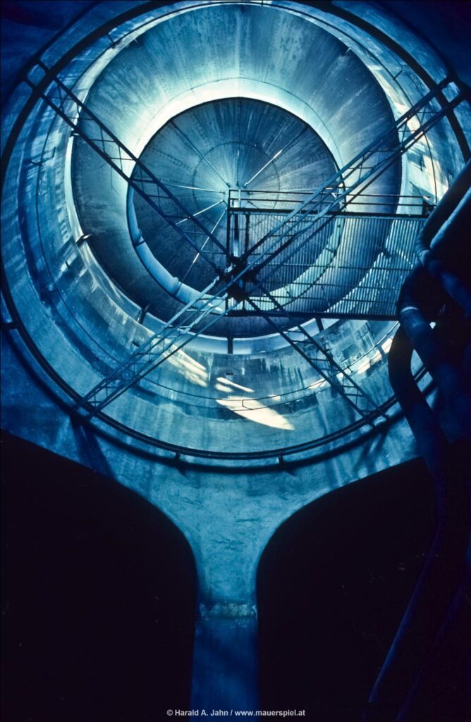 Ein Sommertag, ich bin in den späten 1990ern mit dem Rad unterwegs, komme an den Gasometern in Wien Simmering vorbei. Die Gegend ist ein seltsames Niemandsland am Rand der Stadt: Industrieruinen, Gärtnereien, ein einsames Wirtshaus, Bahngleise, ein alter Gemeindebau. Die Umwidmung steht bevor, bald werden Wohnbauten das Bild bestimmen. Die alten Gasometer sind ikonische Sehenswürdigkeiten im Osten der Stadt, sie sollen mit Wohnbauten gefüllt werden, noch ist davon nichts zu sehen. Zu meiner großen Überraschung sehe ich ein Tor offen stehen. Ungehindert betrete ich den riesigen Hohlraum – und bin überwältigt.