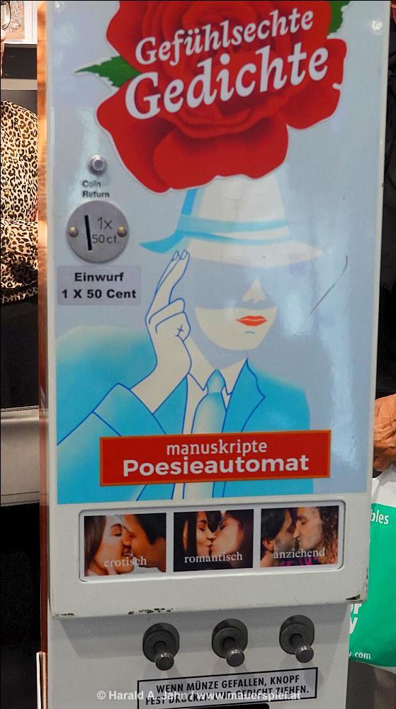 Will man zum Ausgang, muss man erst durch die Halle von Thalia – ähnlich wie ein Museumsshop, hier werden die in Stimmung gekommenen Autoren nochmal gemolken und mit dem konfrontiert, was sie nie erreichen werden: Bücher, die auch tatsächlich verkauft werden.