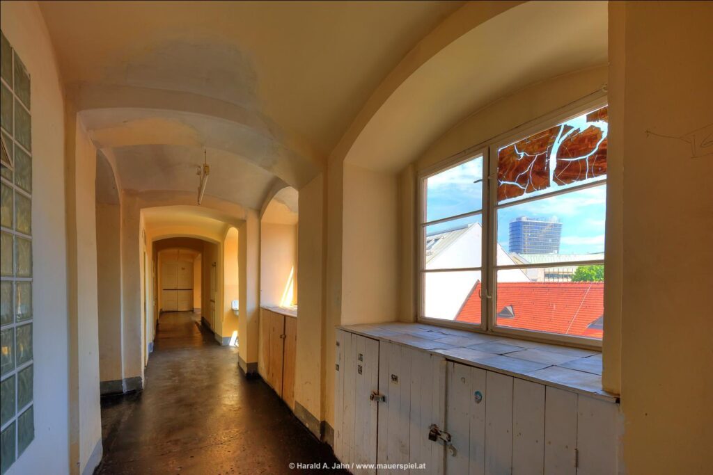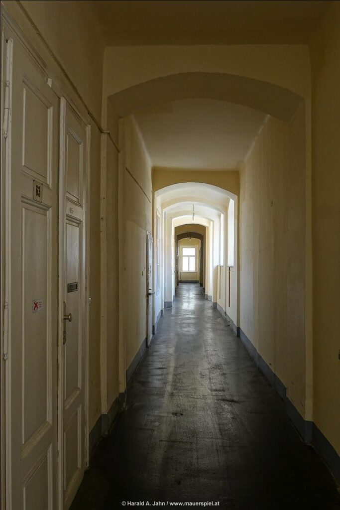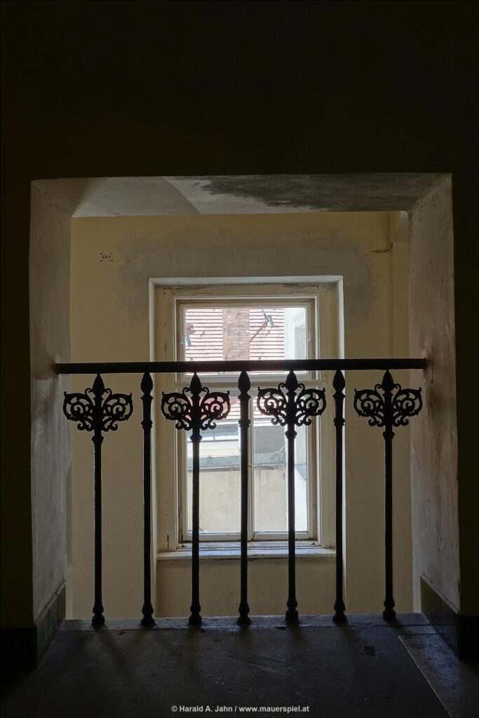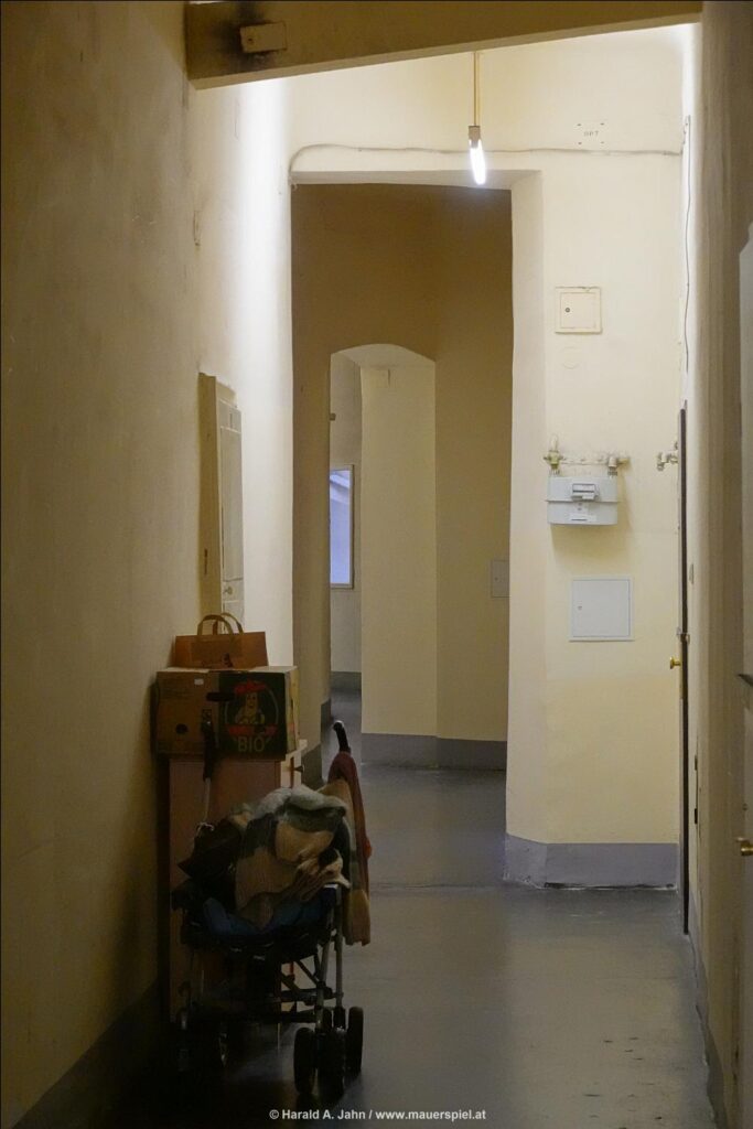 Als ich in den 1980ern die Stadt erforschte, wurde ich auf ein seltsames Mietshaus aufmerksam. Es war ein dunkler Kasten an der Taborstraße, und ging man hinein, verlor man sich im seltsamen Grundriss: Drei Stiegenhäuser, etliche Lichthöfe, Unmengen von Wohnungen, eigenartige Mieter. Ich wanderte durch das gestapelte Dorf, kam an kleinen Plätzen ebenso vorbei wie an Weggabelungen, an denen Bewohner im Gespräch vertieft waren; sie verstummten misstrauisch, als ich vorbei ging, und ich fühlte mich wie Kafka in seinem Schloss.