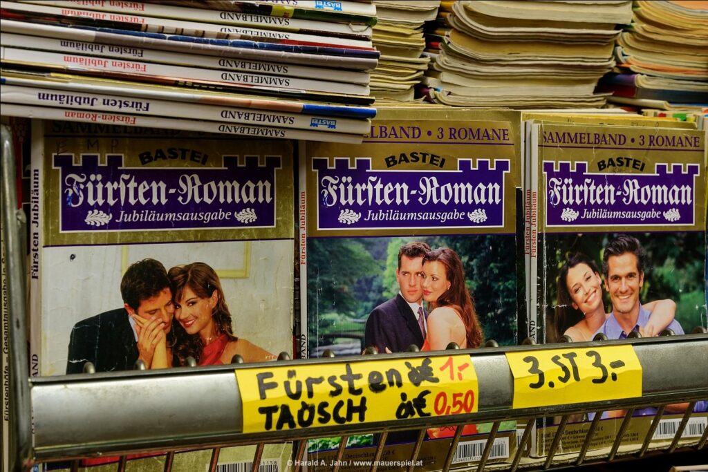 Romanschwemmen gab es früher an fast jeder Straßenecke, inzwischen sind sie fast ausgestorben. Ein wunderbares Relikt ist das kleine Geschäft von Frau Sarközi am Beginn der Prager Straße in Floridsdorf. Taschenbücher und Heftromane stapeln sich bis zur Decke, die Ordnung ist penibel, der Duft des alten Papiers lässt sofort Erinnerungen wach werden. Dabei werden die Groschenromane oft unter ihrem literarischen Wert gehandelt: gerade im Bereich SciFi wurden Autoren wie Arthur C. Clarke (2001:Odysee im Weltraum), Edgar Rice Burroughs (Tarzan) oder Philip K. Dick (Blade Runner, Minority Report) weltbekannt. Das bestätigt auch Frau Sarközi, die selbst gerne liest – „quer durch die Themen“, wie sie sagt – und die teils hohe Qualität der Bücher bestätigt. Natürlich wird man mit so einem Geschäft nicht reich, aber es trägt sich, und ans zusperren denkt sie keinesfalls: zu viele Geschichten warten noch zwischen angegilbten Einbänden auf ihre Entdeckung an stillen Tagen im Klischee.